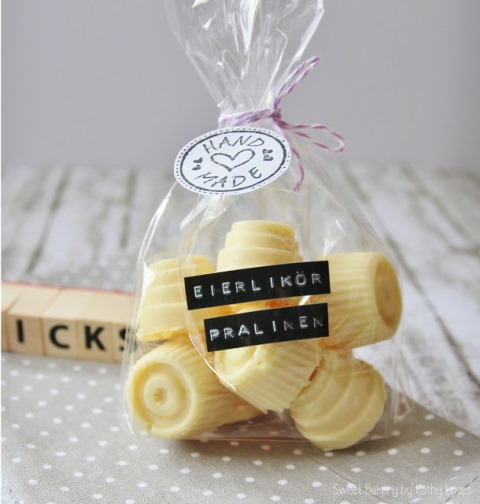 Natürlich habe ich es mir nicht nehmen lassen ein paar der köstlichen Eierlikör Pralinen hübsch zu verpacken und an meine Freunde zu verschenken. So kam auch mein neues Bakers Twine mal zum Einsatz.
